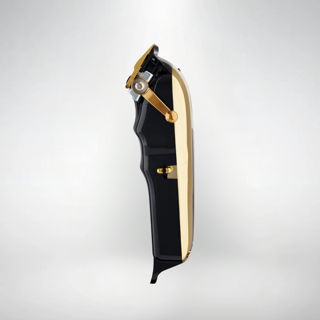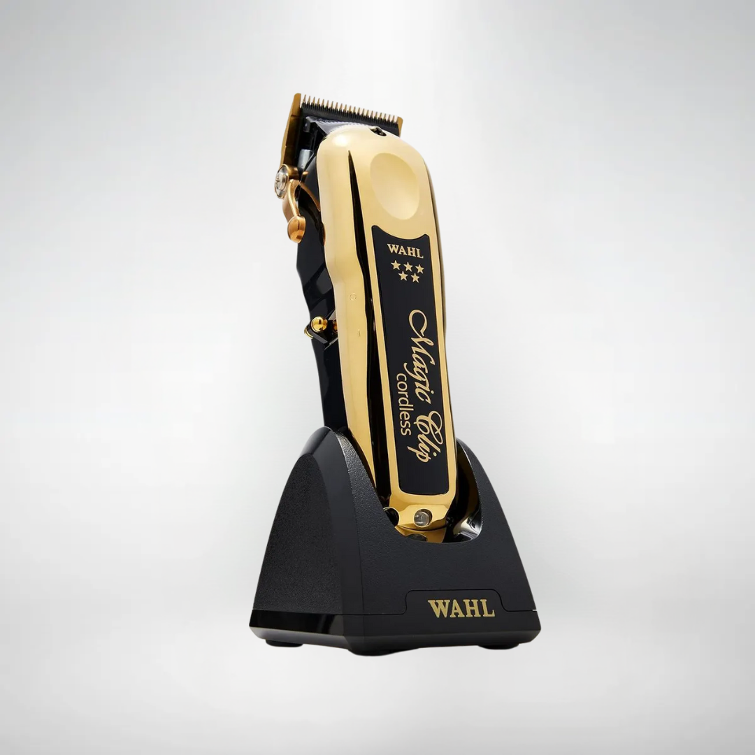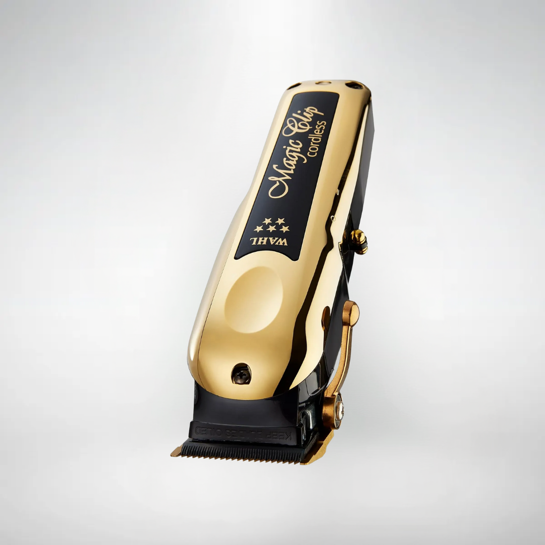 Descubrí la nueva Magic Clip Gold, equipada con cuchilla de dientes escalonados y revestimiento de titanio y carbono DLC, que mejora el control de temperatura y proporciona cortes más frescos, precisos y texturizados.